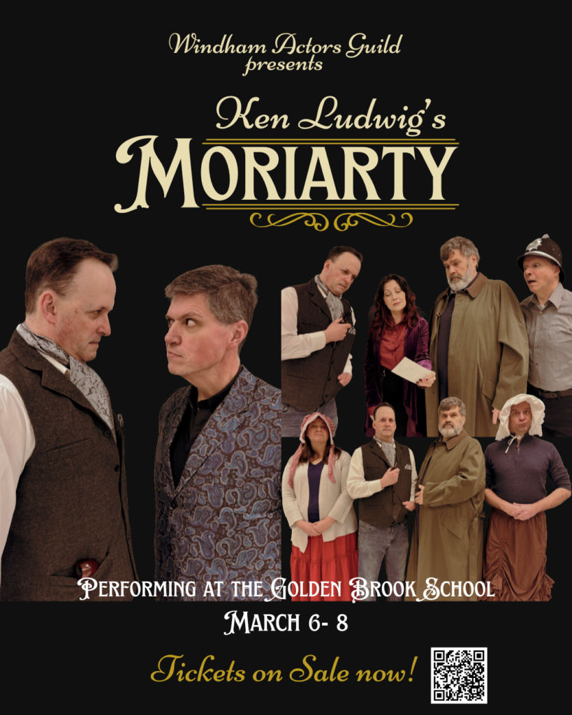 Windham Actors Guild is excited to bring to audiences, Ken Ludwig’s Moriarty: A New Sherlock Holmes Adventure—the thrilling sequel to Baskerville! Packed with disguises, danger, and Ludwig’s signature wit, this fast-paced mystery reunites Holmes, Watson, and a colorful cast of characters as they pursue the world’s most notorious criminal mastermind.
